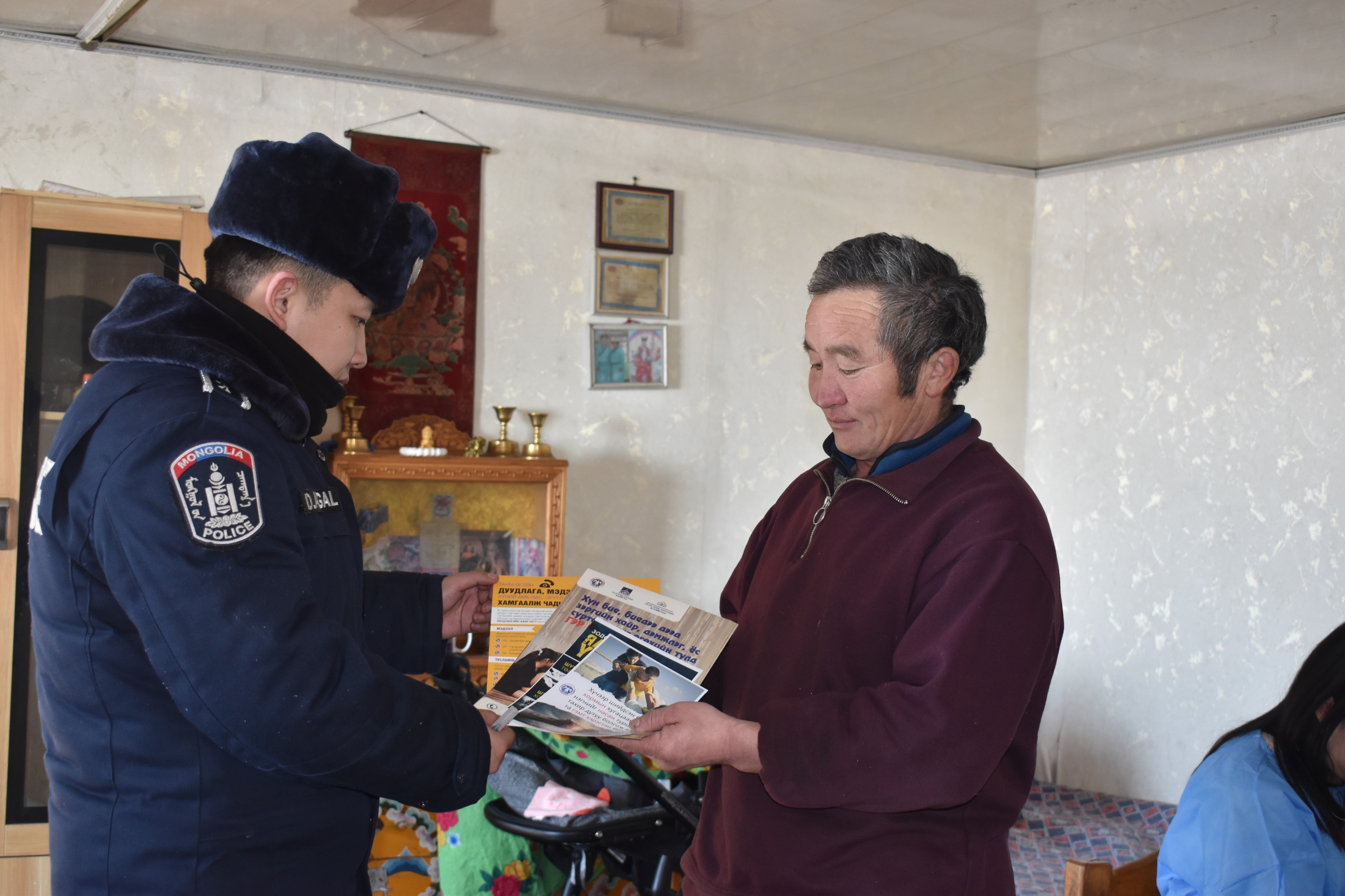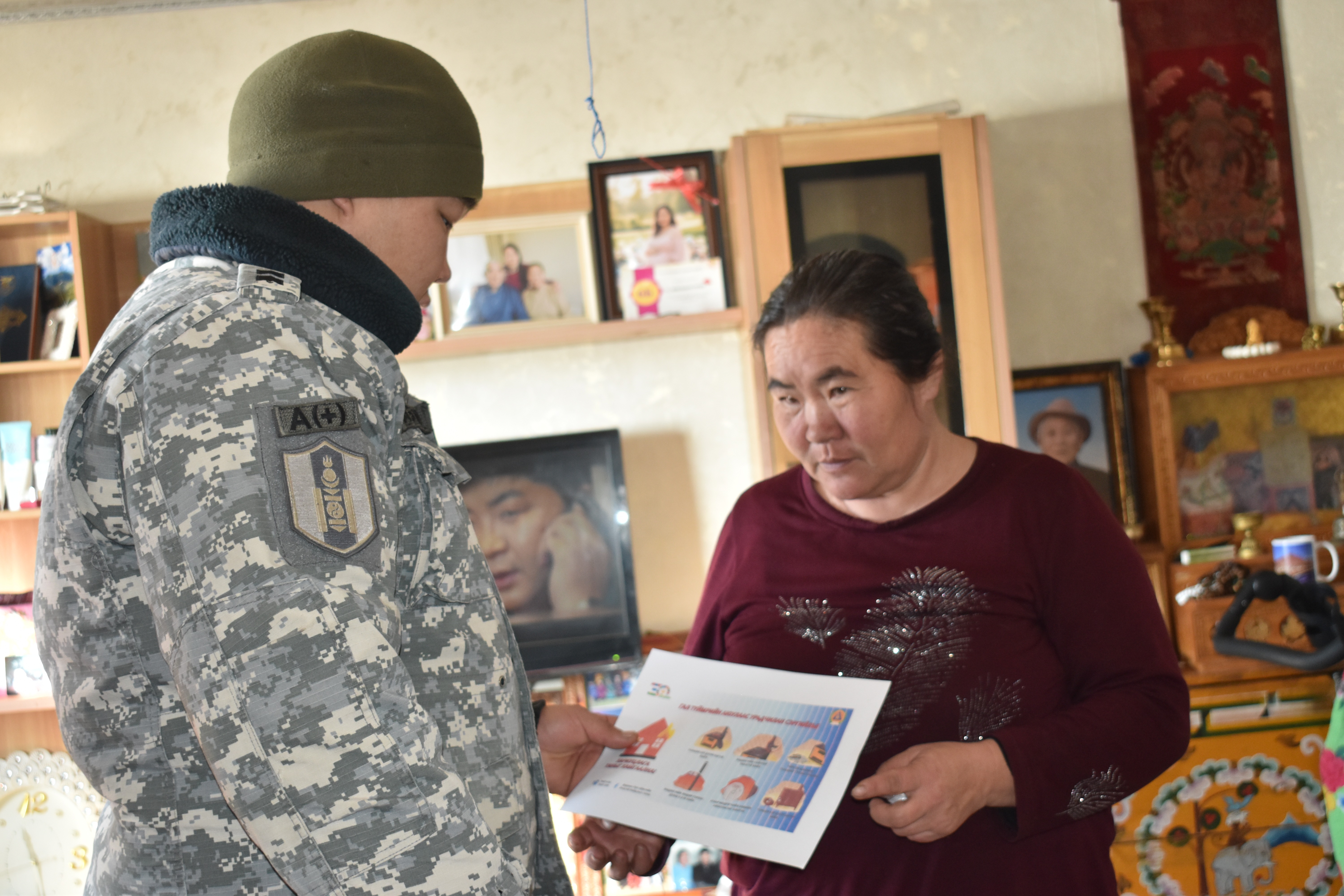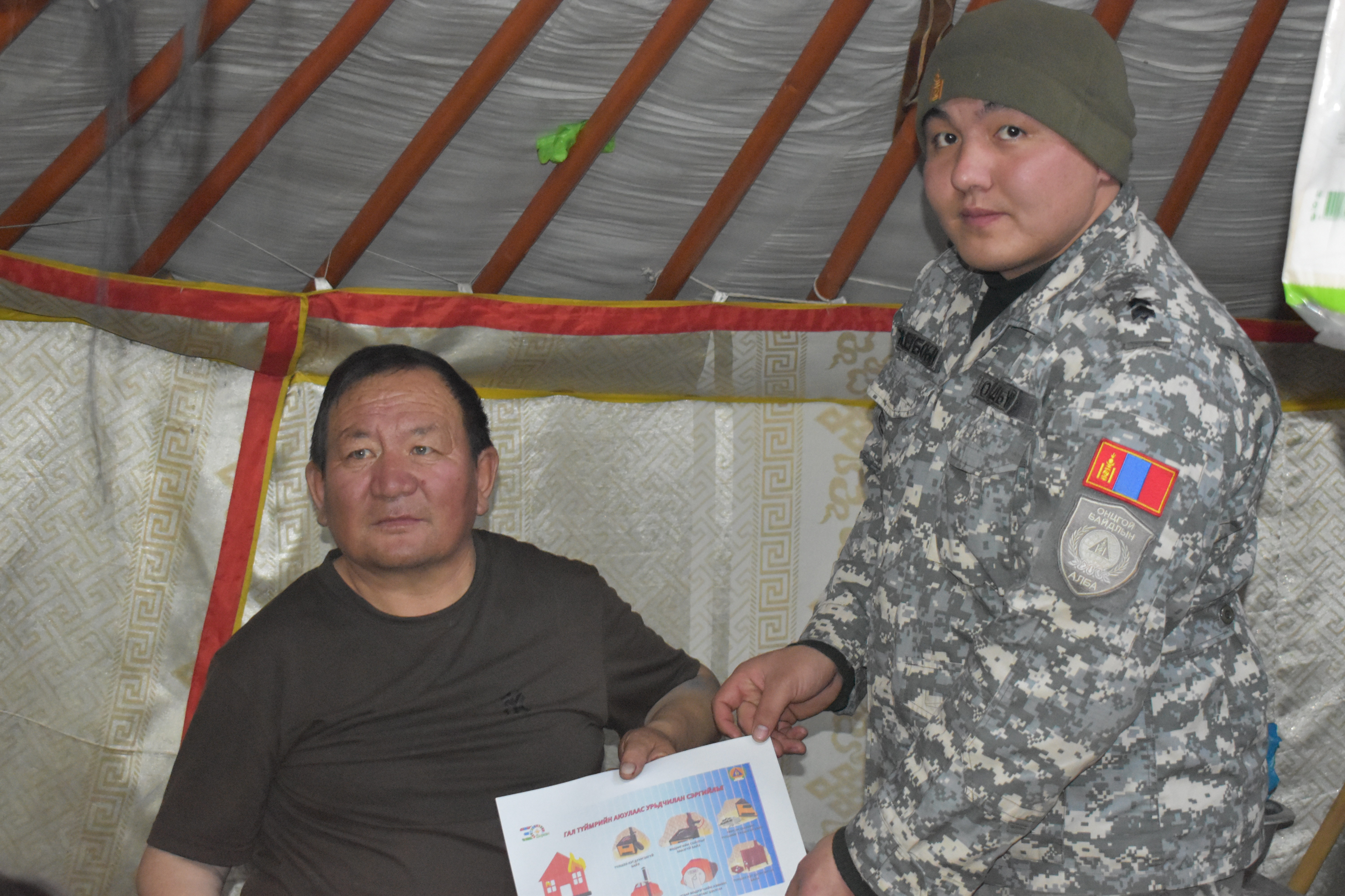 Мөн Сум дундын цагдаагийн хэлтсийн дэслэгч Б.Азжаргал, Гал унтраах онцгой байдлын 55-р ангийн алба хаагч ахлагч Н.Батбуян нар холбогдох чиглэлээр сэрэмжлүүлэг мэдээлэл өгч, Сумын эрүүл мэндийн төвийн бага эмч Б.Даваа хөдөөгийн иргэдэд үзлэг хийж өндөр настан, хүүхэд, жирэмсэн эх, хөгжлийн бэрхшээлтэй иргэдэд анхан шатны тусламж үзүүлж, 4 чиглэлийн 17 өрхөд хүрч ажиллалаа.
