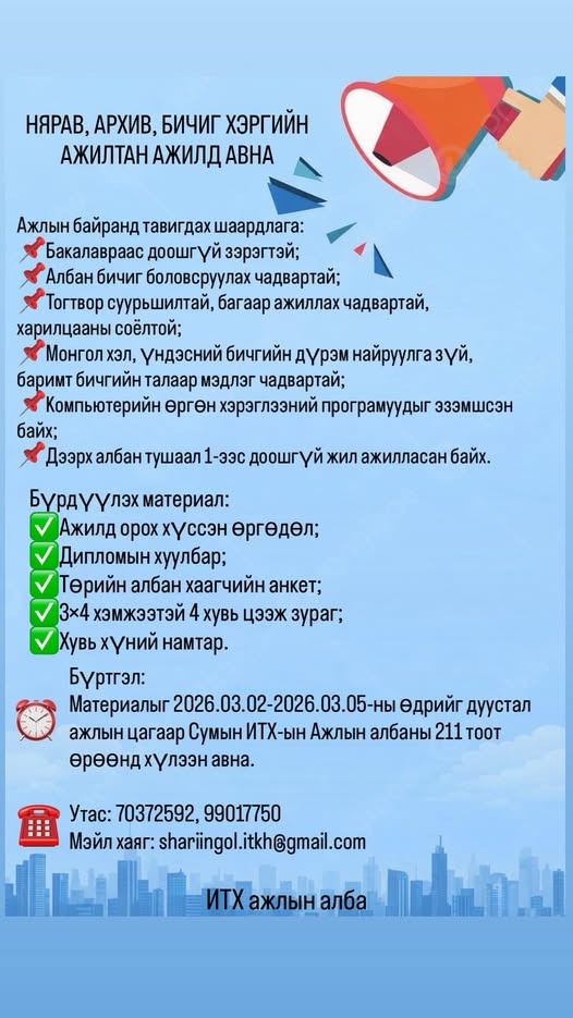 НЯРАВ, АРХИВ, БИЧИГ ХЭРГИЙН АЖИЛТАН АЖИЛД АВНА